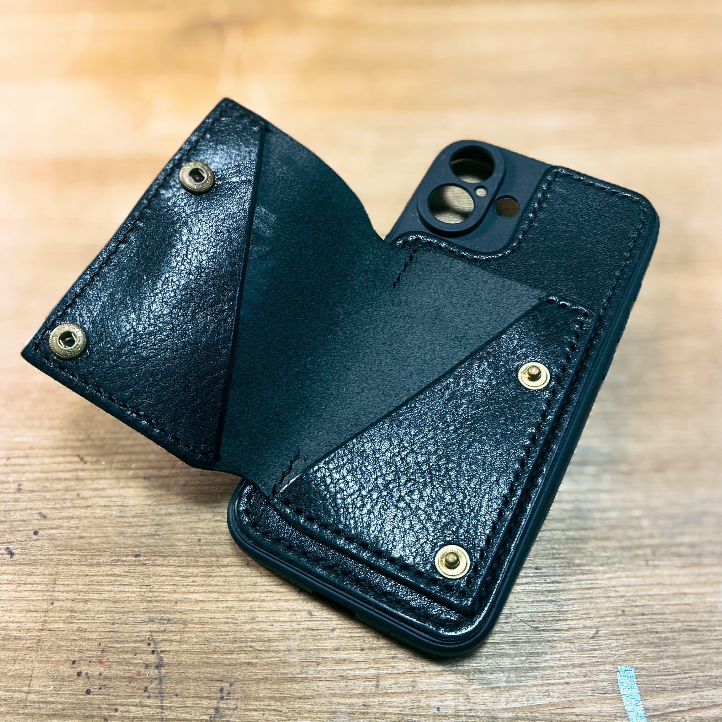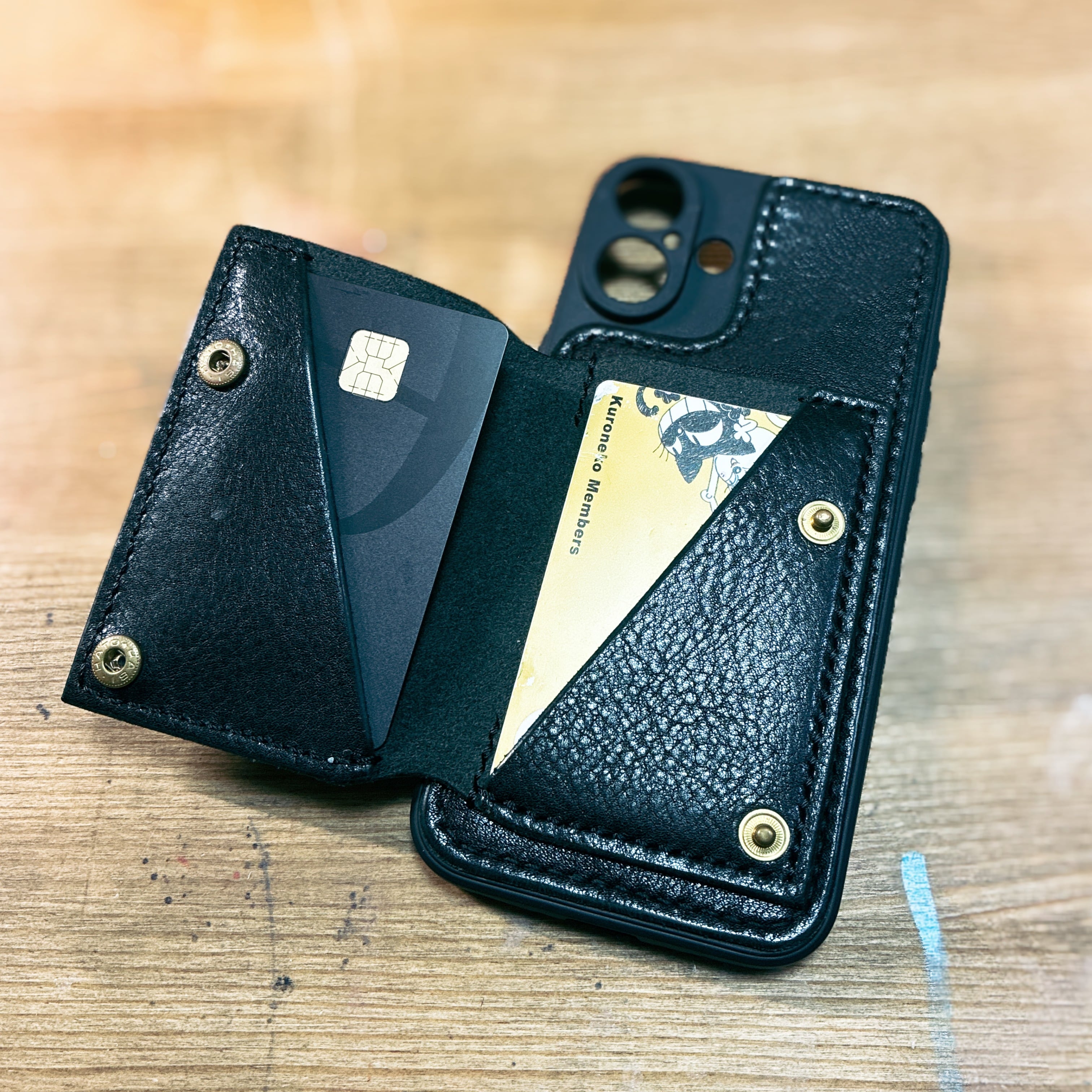 iPhone16 Plus用 レザーケース|オイルレザーのカード収納付き本革ケース(最大6枚・キャッシュレス対応)
