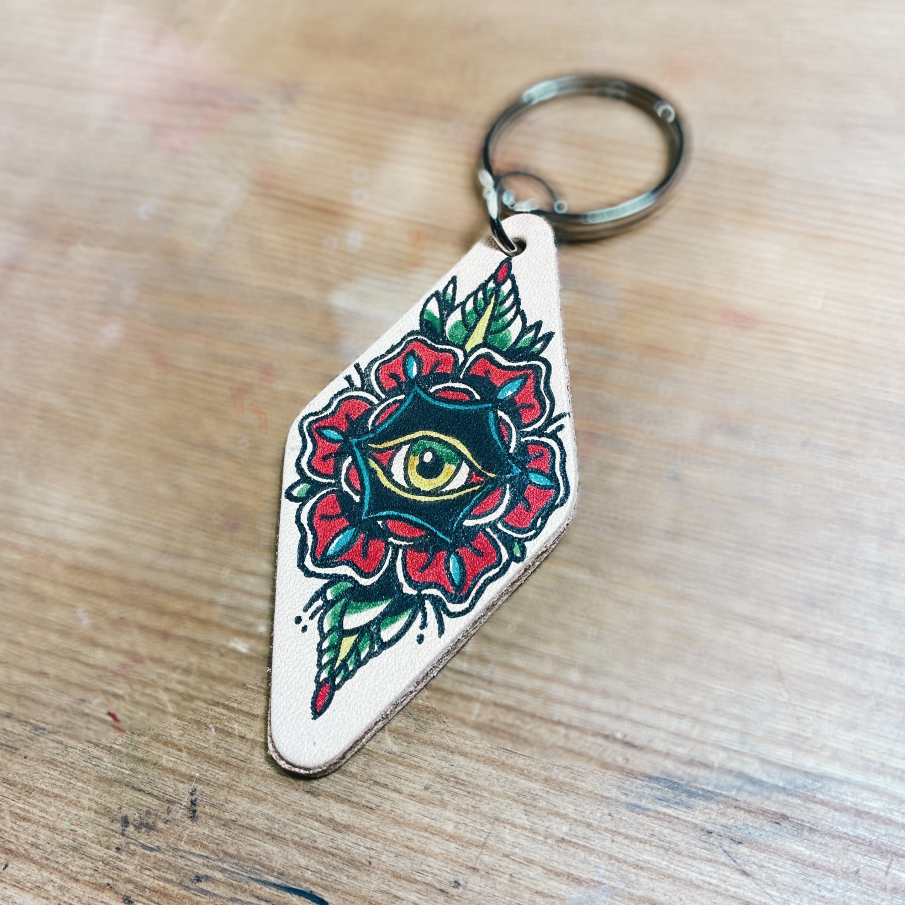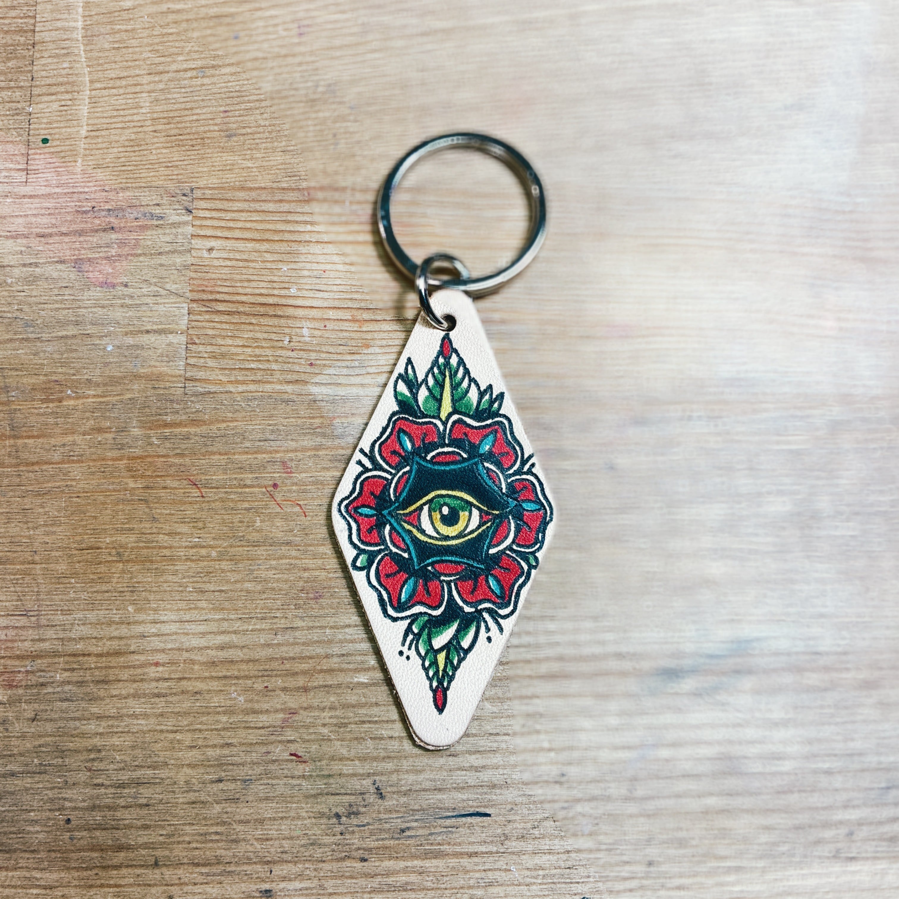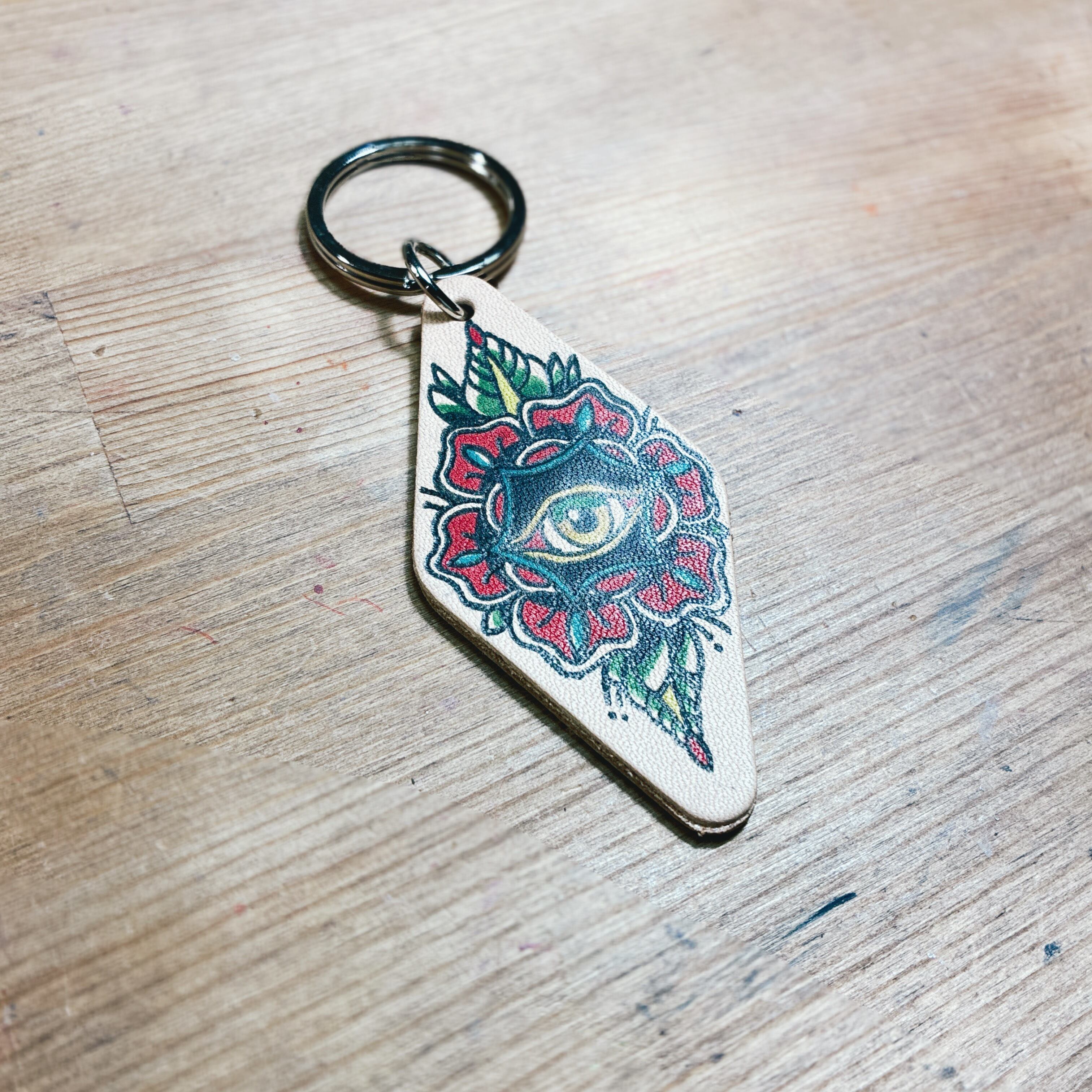 モーテルキーホルダー|タトゥー風手描きイラスト入り レザーキーホルダー(ハンドメイド)