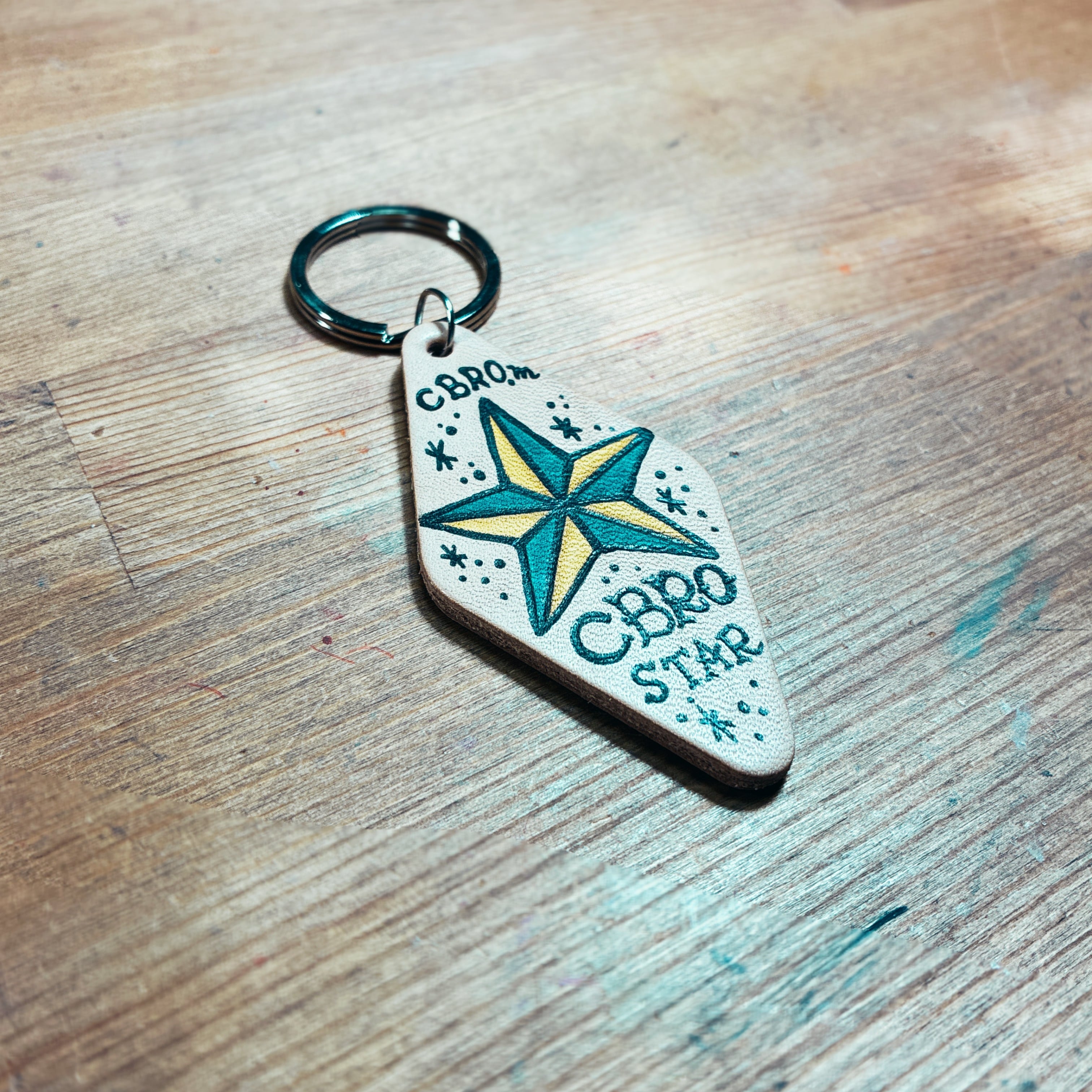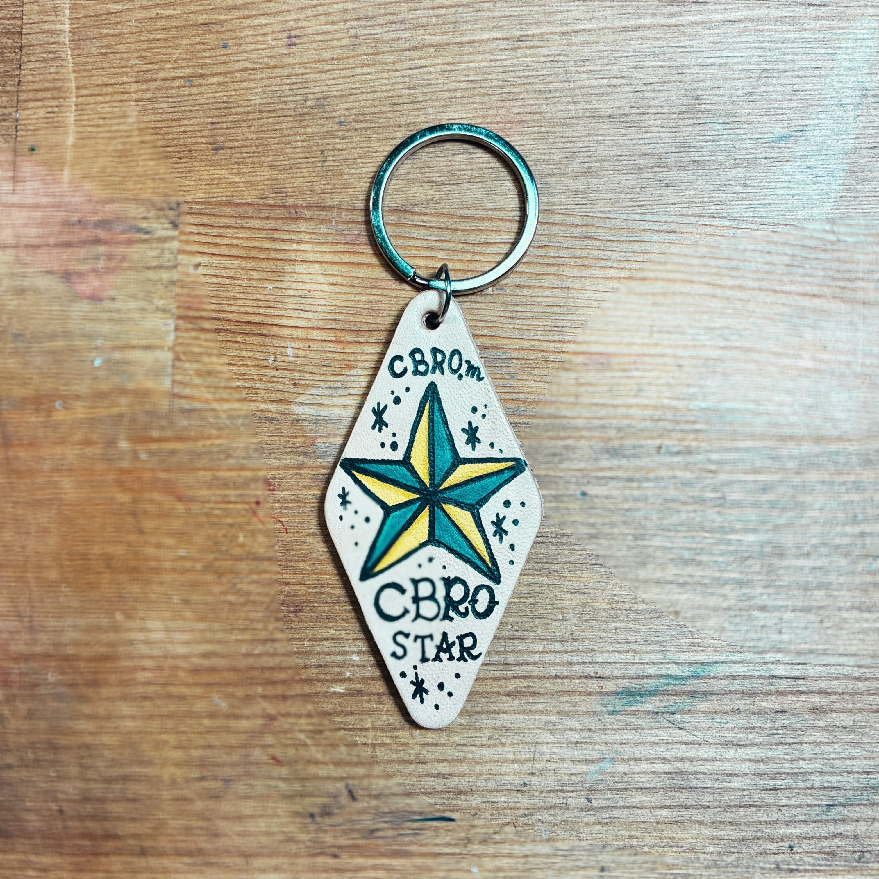 モーテルキーホルダー|タトゥー風手描きイラスト入り レザーキーホルダー(ハンドメイド)