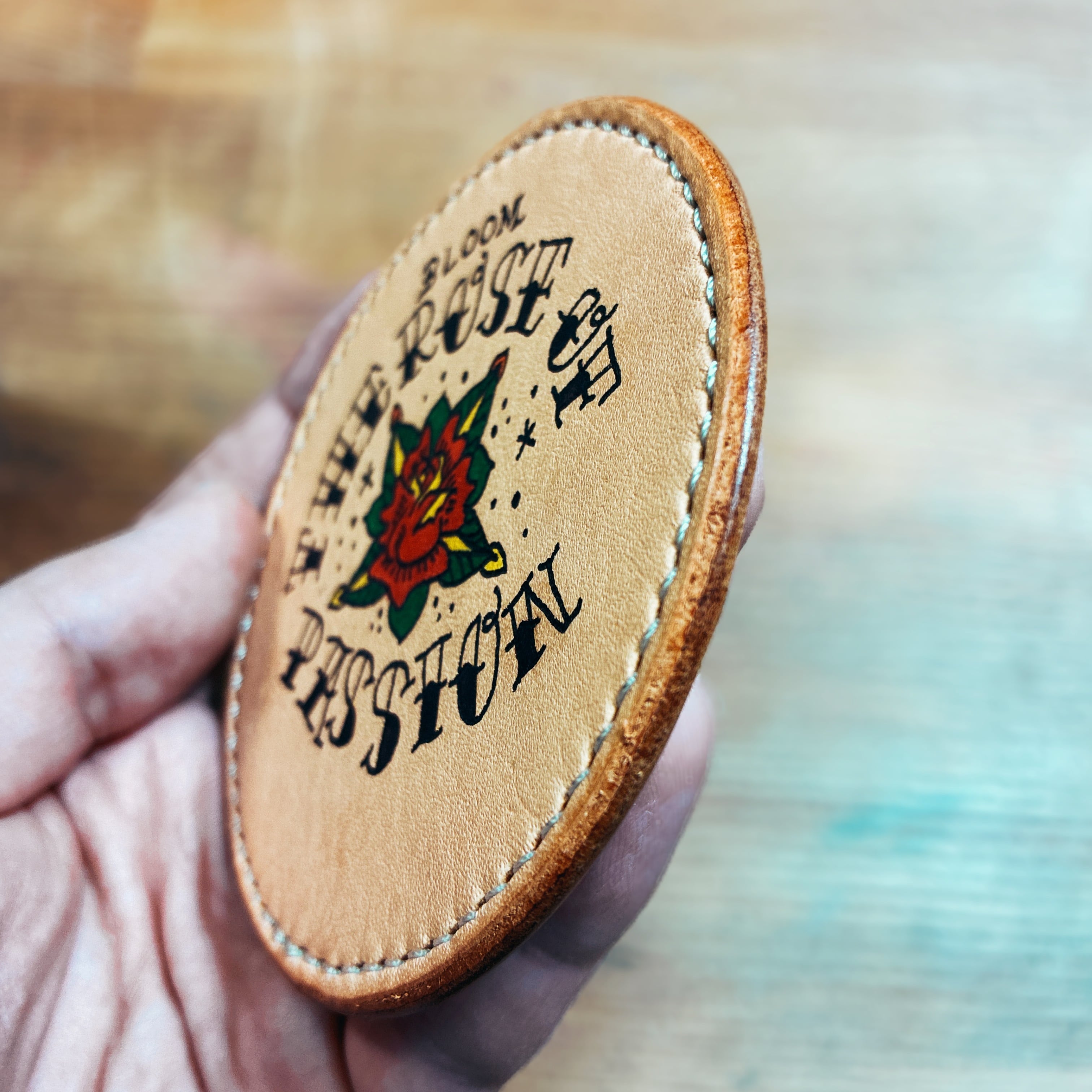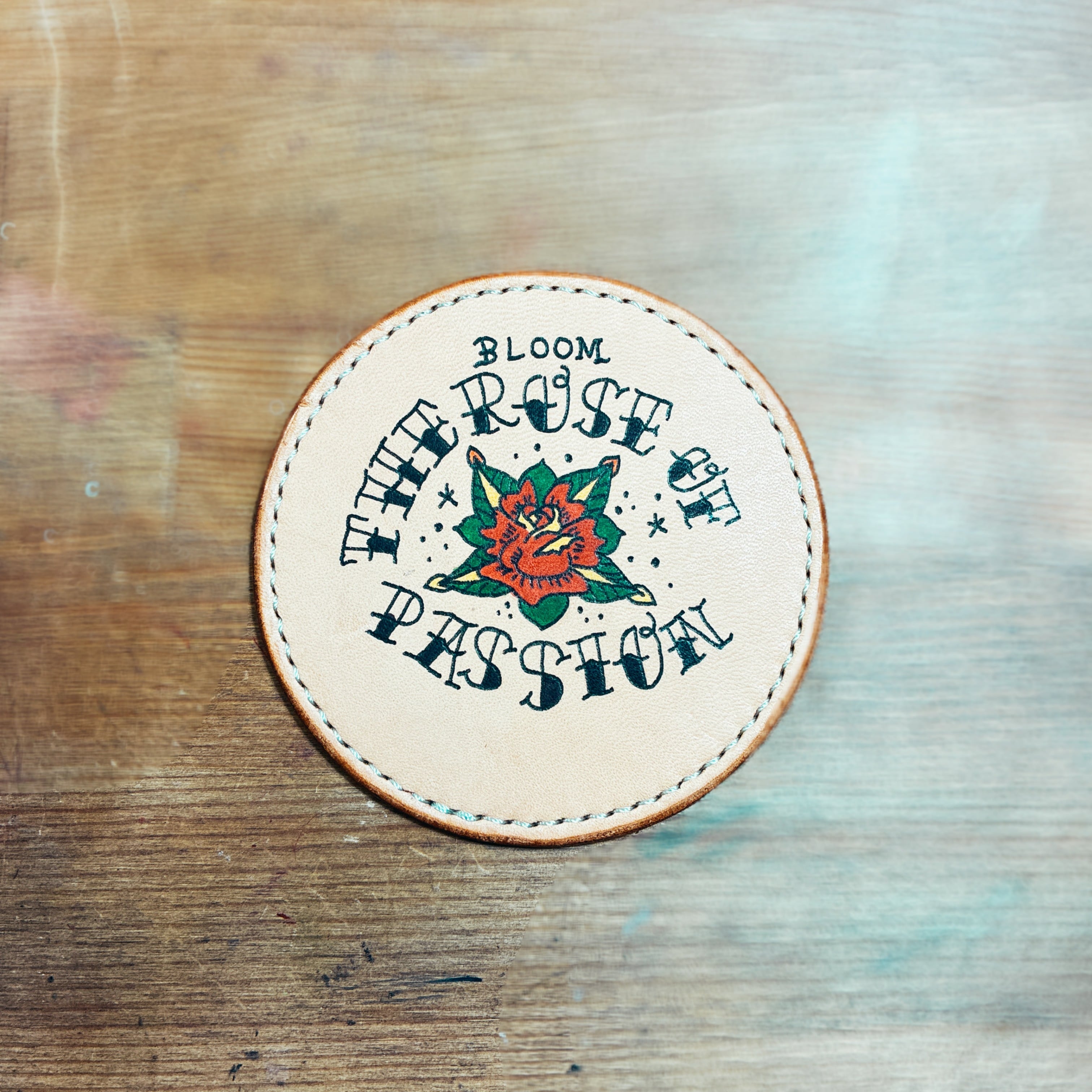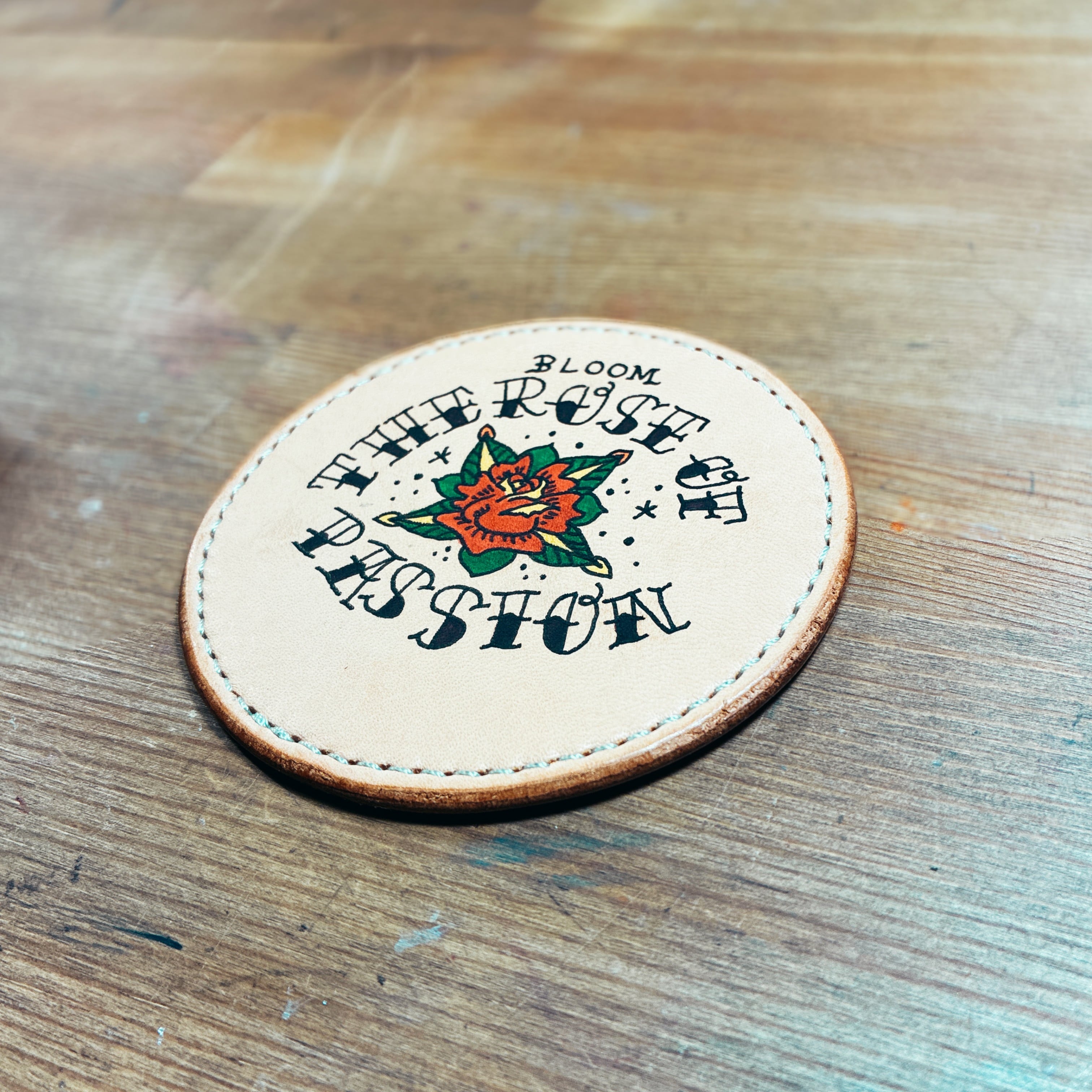 レザーコースター タトゥー風手描きイラスト 薔薇