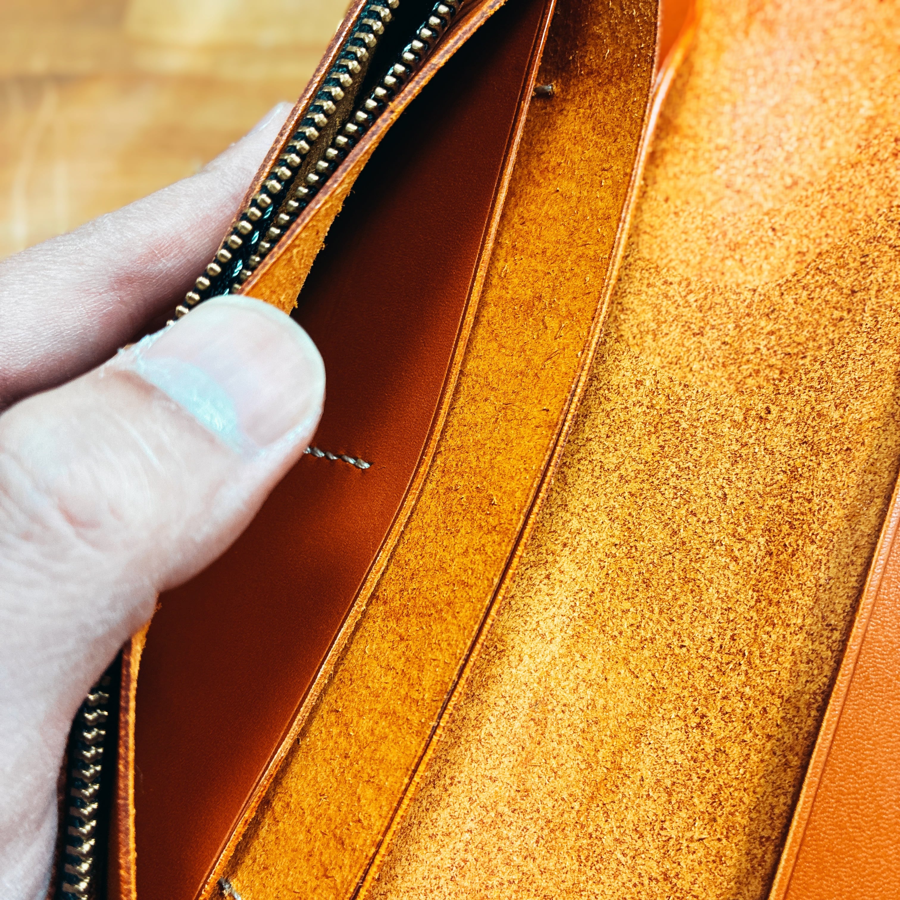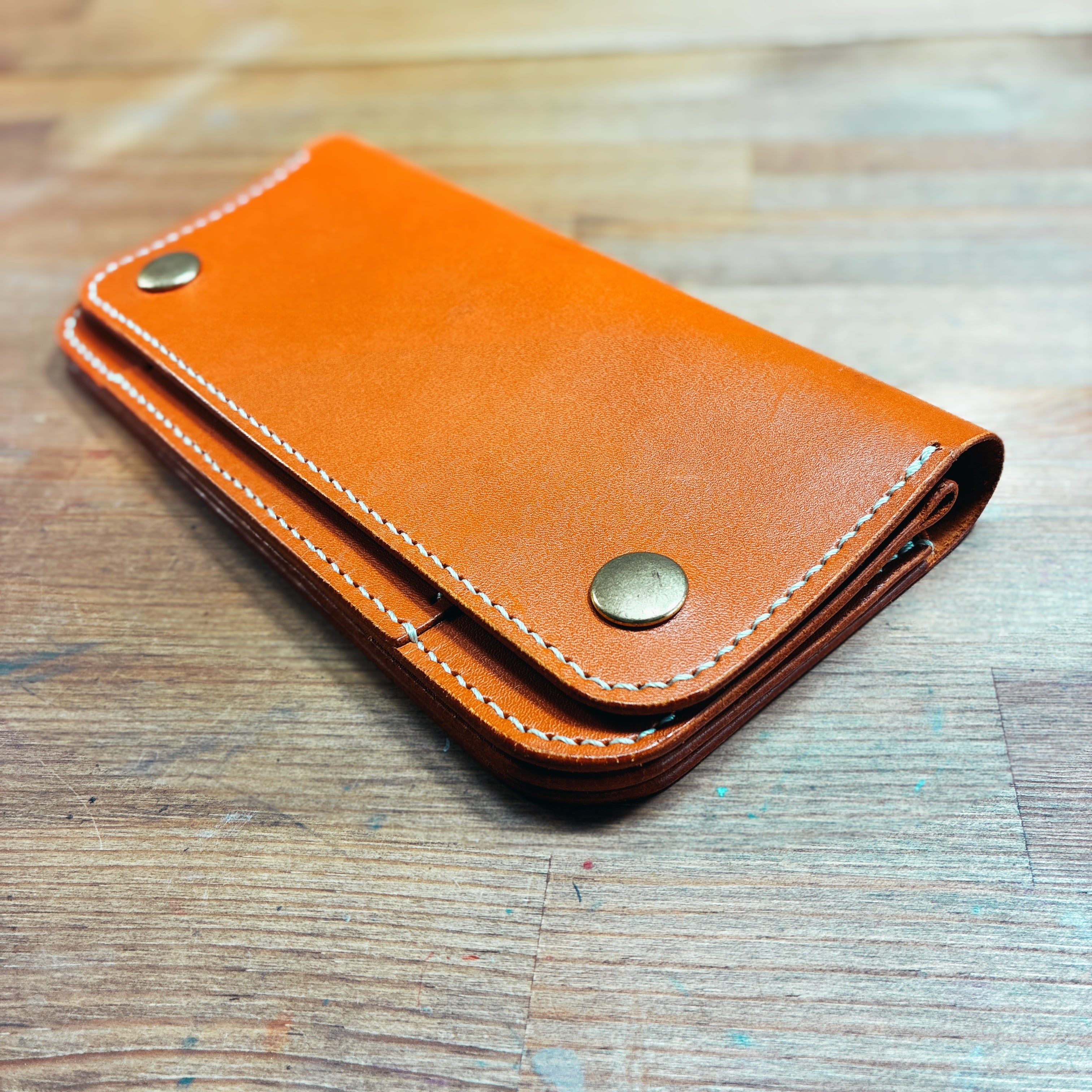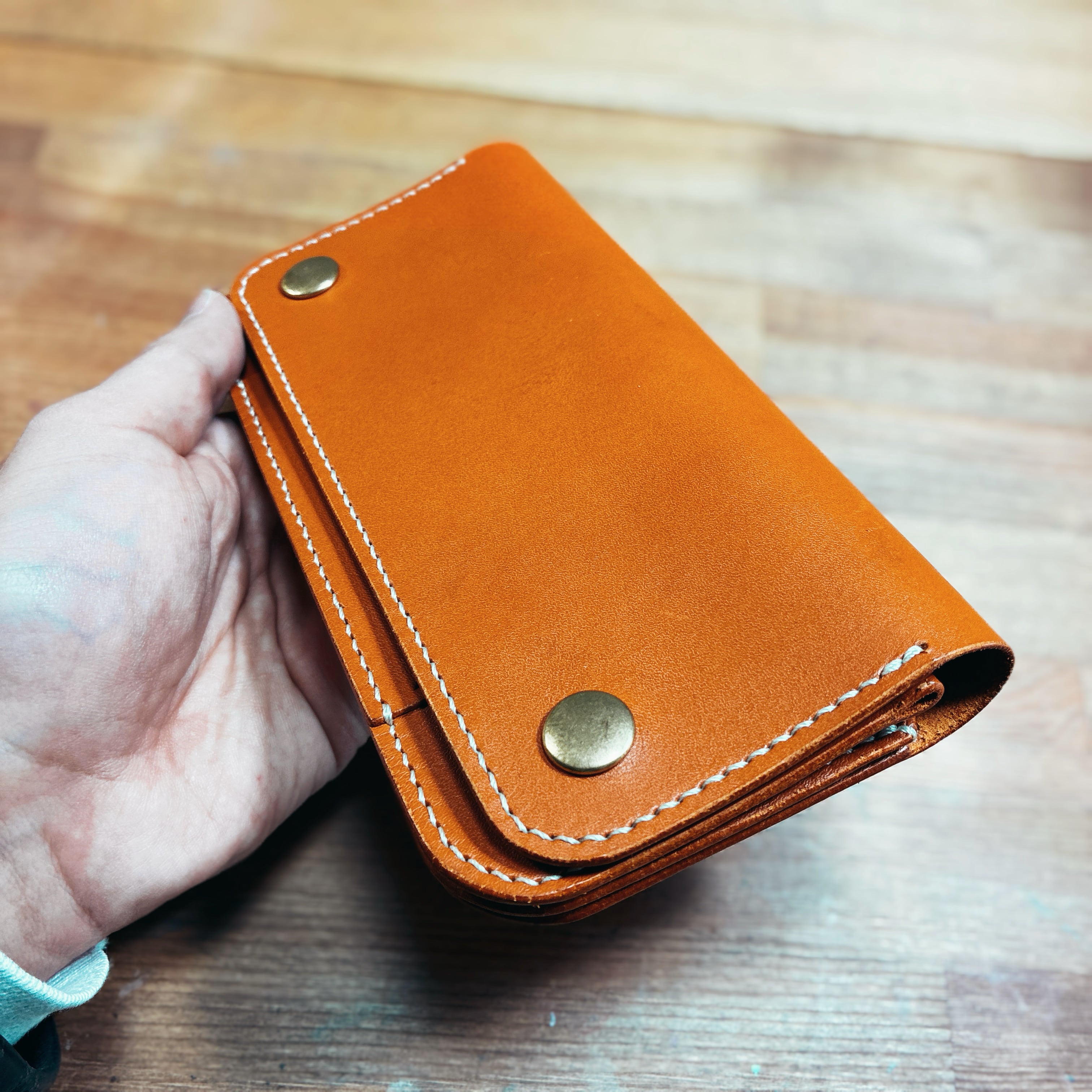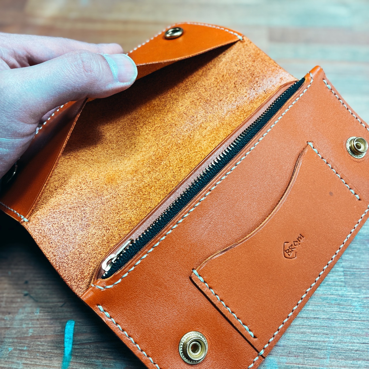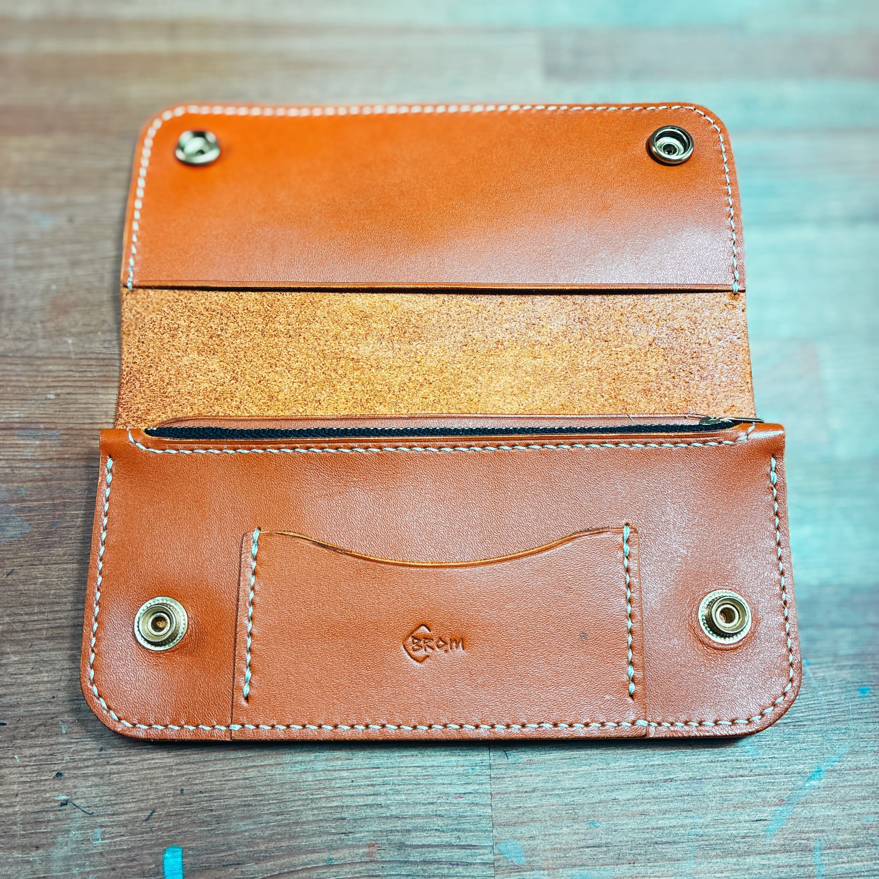 丁寧に仕立てられたこのトラッカーウォレットは、長くご愛用いただけることを念頭にお作りしています。