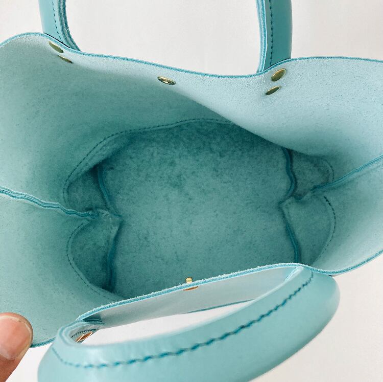 【スカイブルー】牛革で作ったハンドバッグ 総手縫い ハンドメイド ミニトートバッグ トートバッグ